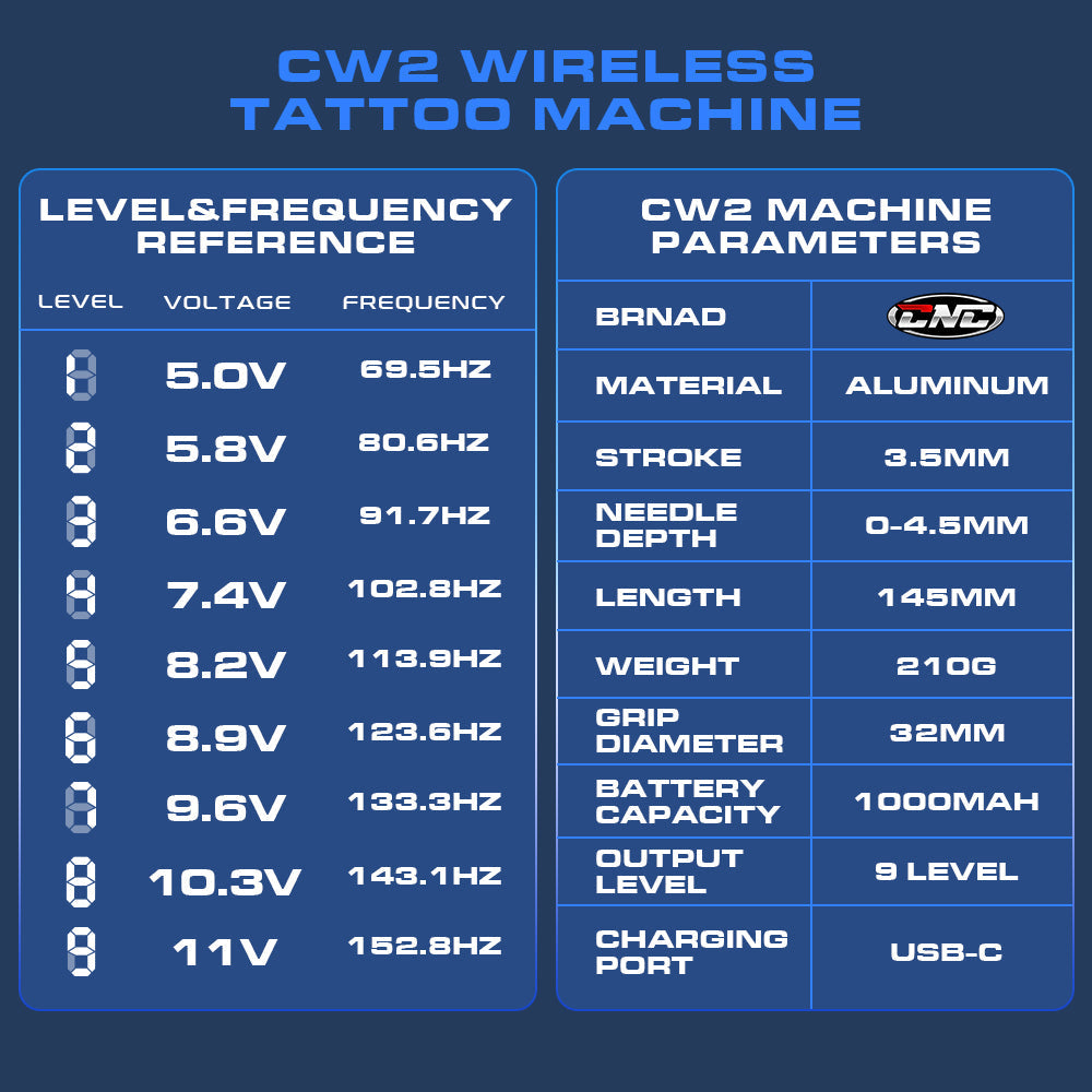 Nine Adjustable Settings: Offers a wide range of voltage options to cater to various tattooing needs.