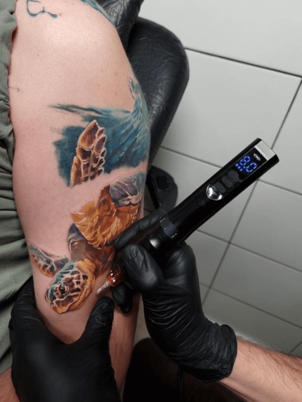Rotary tattoo machines, on the other hand, are incredibly quiet. There’s a small motor encased in each rotary tattoo machine that moves the attached tattoo needles up and down in a smooth, almost cyclical pattern. Rotary tattoo machines move needles in and out of the skin more fluidly and evenly than coil tattoo machines do.