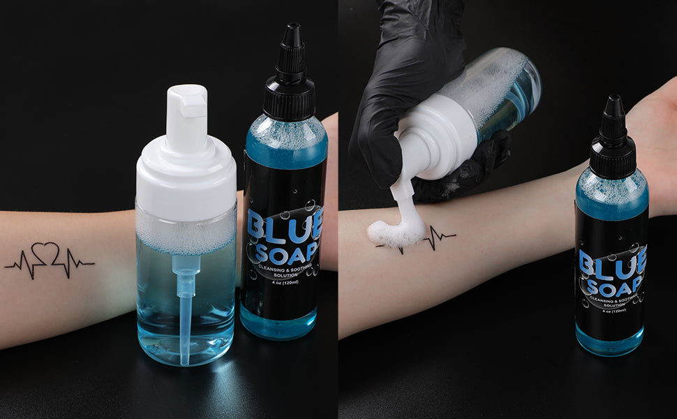 2.Keep the Tattoo Clean: Gently wash your tattooed area with mild, fragrance-free soap and lukewarm water. Avoid harsh scrubbing to prevent irritation. In particular, many tattoo artists recommend using a specially formulated tattoo cleanser to clean the tattooed area, such as Blue Soap Cleaning Soothing Healing Solution. Dial Gold Antibacterial Soap is not fragrance-free, but some tattoo artists recommend uing it.
