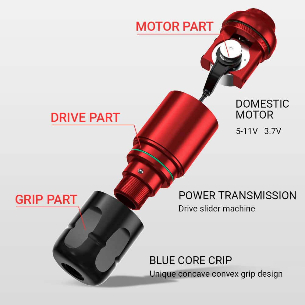 Featuring an advanced 1600mAh power supply, the wireless tattoo gun supports 5–12V output. Once fully charged, the lithium battery lasts 3–5 hours depending on voltage and motor usage—ideal for uninterrupted creative sessions.